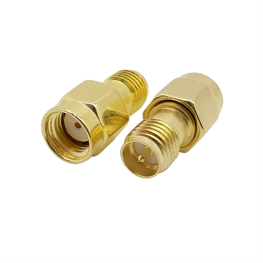 Перехідник має роз'єм RP-SMA Male (тато) з одного боку і RP-SMA Female (мама) - з іншого.
